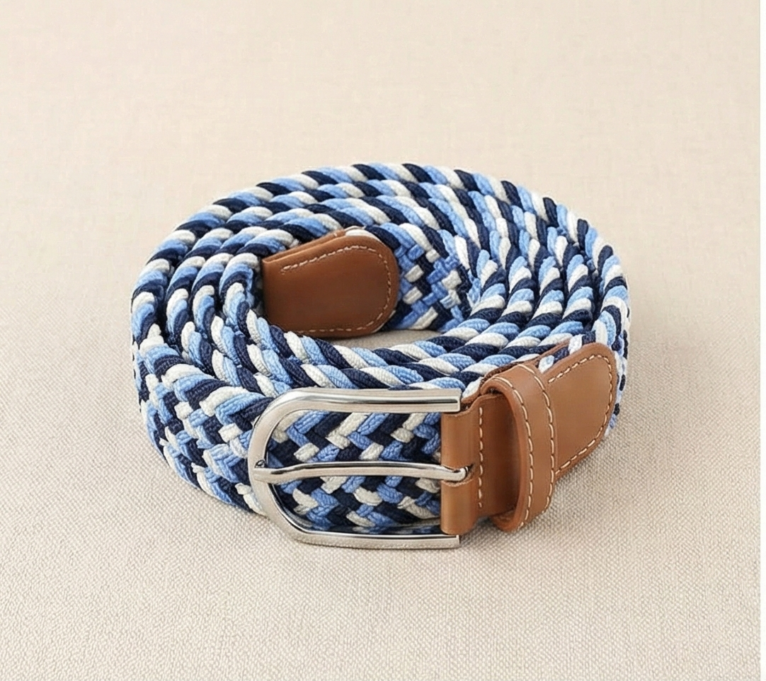 A timeless combination built for effortless style. The Braided Stretch Belt in Navy Blue & White delivers a crisp contrast with a refined woven texture, making it a versatile addition to both casual and smart outfits.