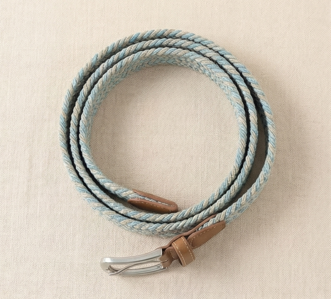 Braided Stretch Belt - Beige & Light Blue