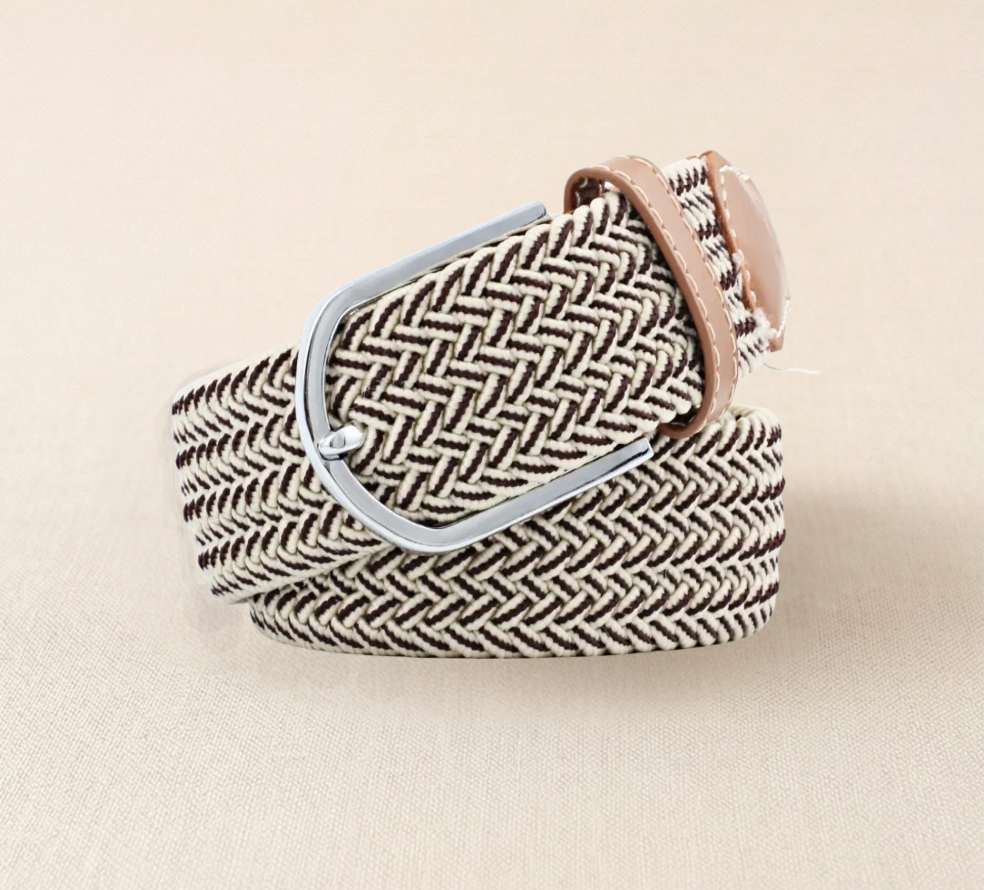 Braided Stretch Belt – Heritage (Beige & Brown)